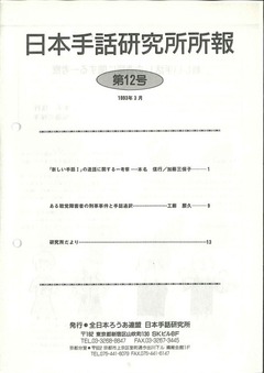 本名 信行・加藤 三保子 『新しい手話』の造語に関する一考察